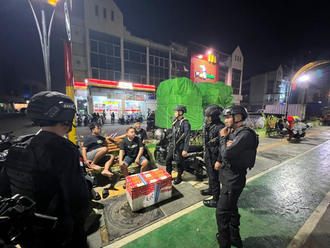 Jaga Kamtibmas Batalyon A Pelopor Satbrimob Polda Kalbar Gelar Patroli Malam di Pontianak