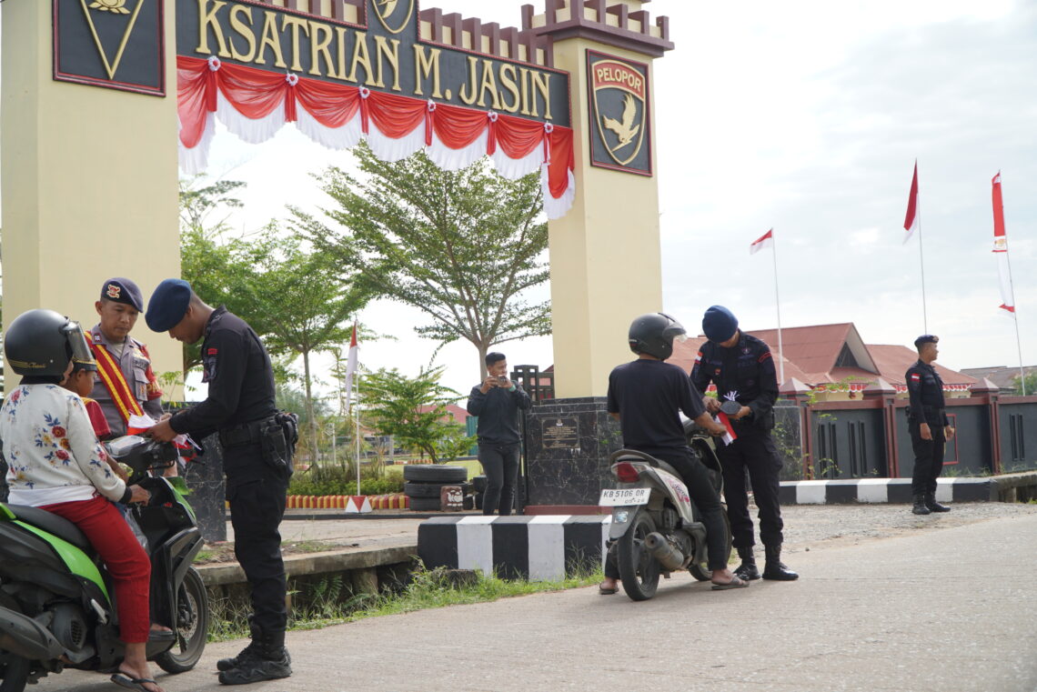 Dalam rangka menyambut Hari Ulang Tahun ke-80 Kemerdekaan Republik Indonesia, Batalyon A Pelopor Satbrimob Polda Kalimantan Barat melaksanakan kegiatan pembagian Bendera Merah Putih kepada masyarakat.
